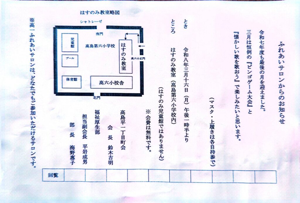 2026年3月前期の掲示板です 2026 3/04 掲示板 2026年3月4日 2026年3月4日 掲示板 よかったらシェアしてね! URLをコピーしました! URLをコピーしました! 2月の回覧板です 2026年3月後期の掲示物です この記事を書いた人 taka1chokai 関連記事 2026年3月後期の掲示物です 2026年3月17日 2月後期の掲示物です 2026年2月18日 2月前期の掲示板です 2026年2月2日 1月後期の掲示物です 2026年1月17日 1月前期の掲示板です 2026年1月5日 12月後期の掲示板です 2025年12月17日 12月前期の掲示板です 2025年12月4日 11月後期の掲示板です 2025年11月19日